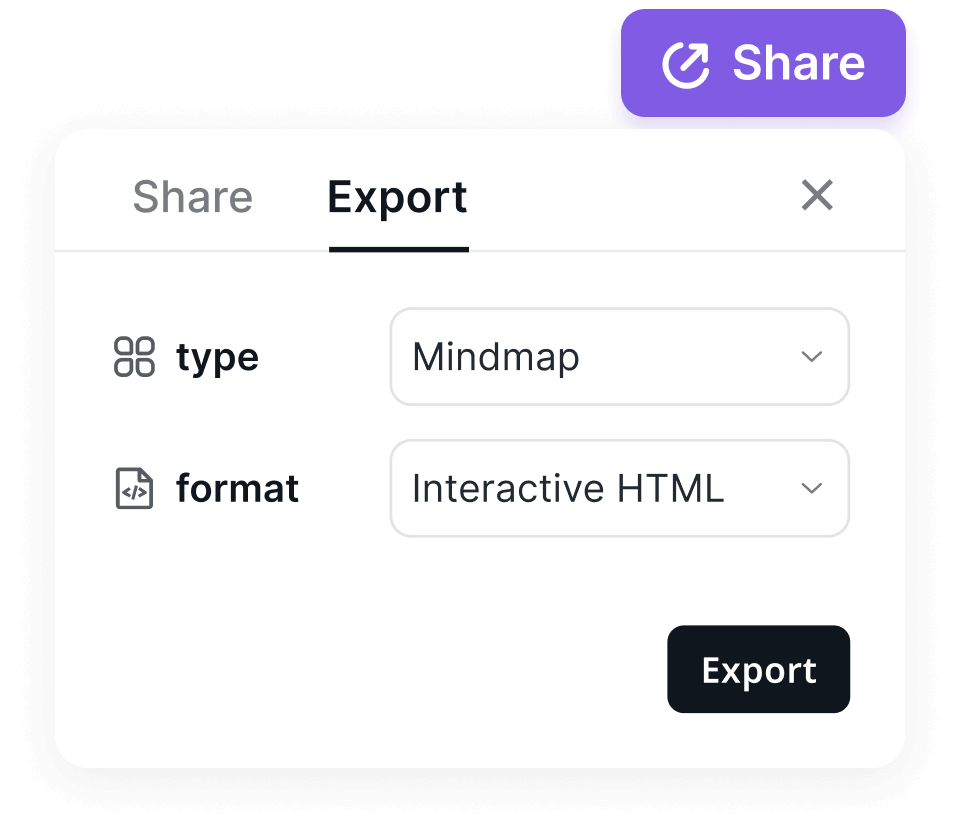 Export your thinking as structured reports, mind maps, or clean Markdown. Your insights become shareable, reusable knowledge assets.